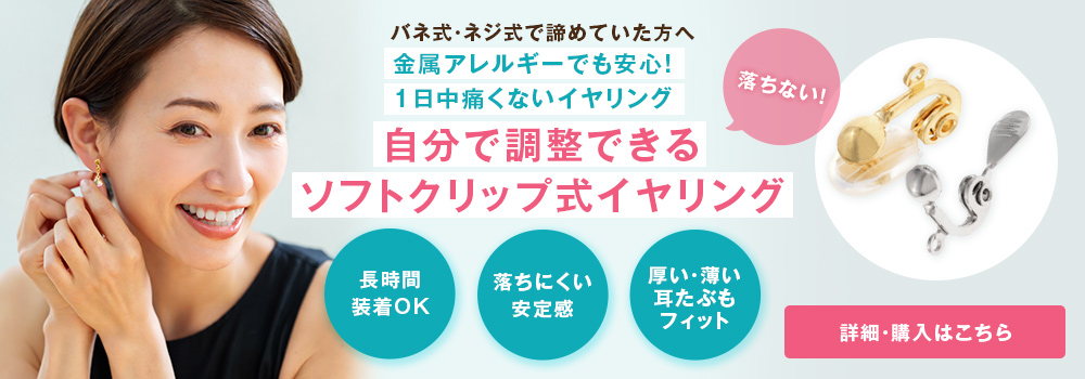 ピアスホールを必要としない耳を挟んで着用するステンレスのイヤーカフや耳に引っ掛けて使用するイヤーフックもございます。