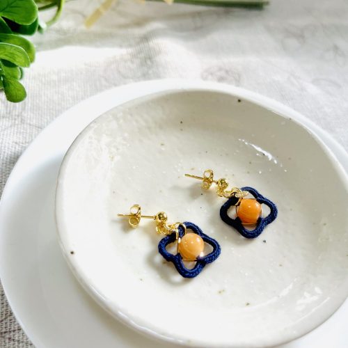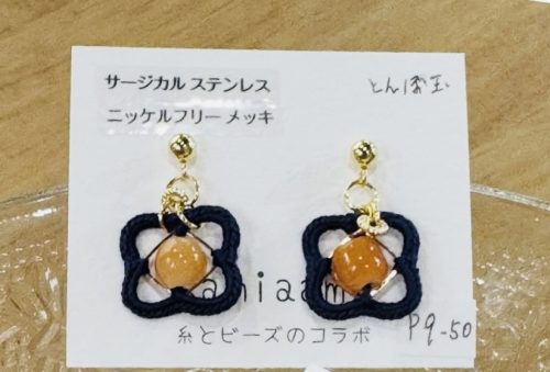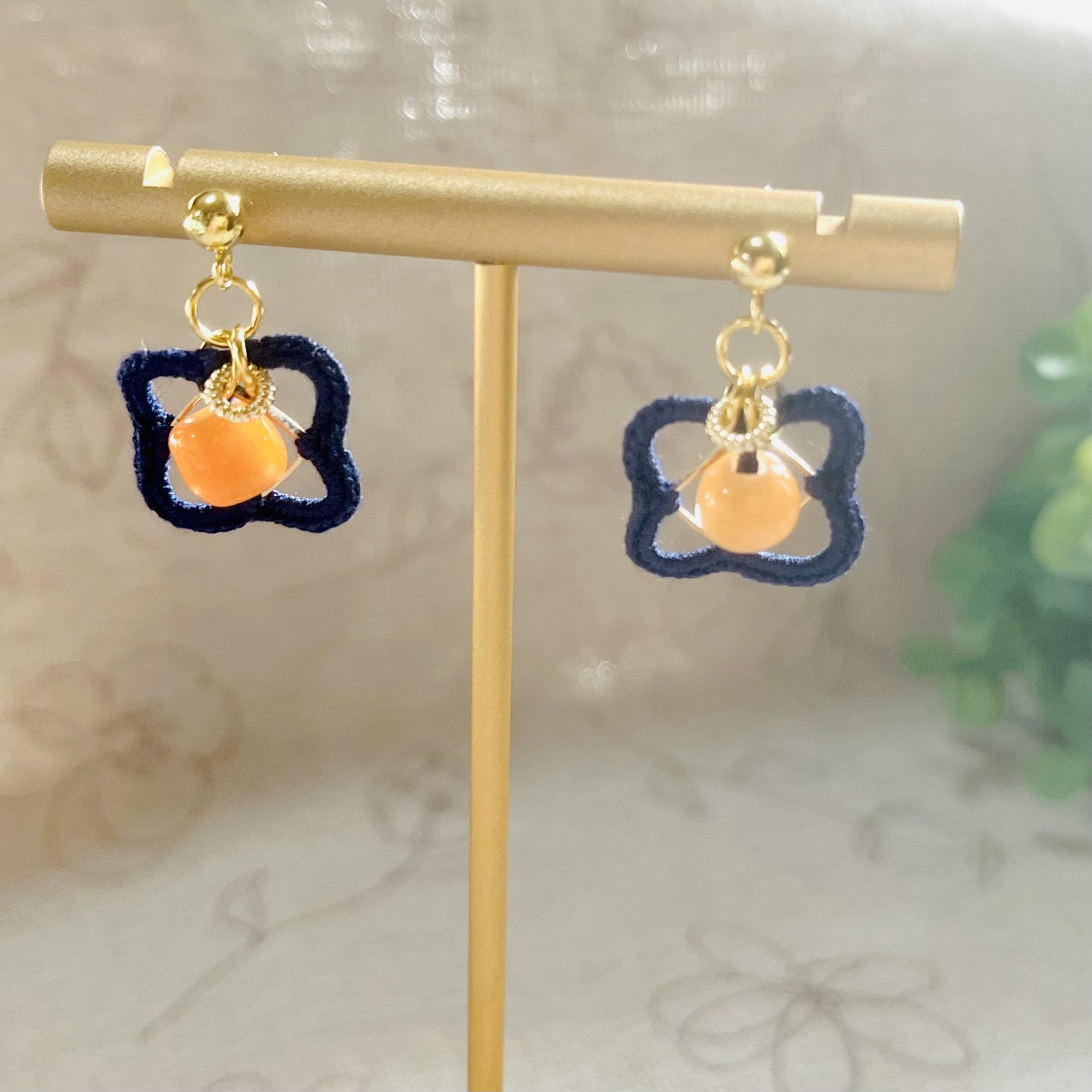 ハロウィン カラー シンプル 編み物 イヤリング とんぼ玉