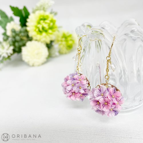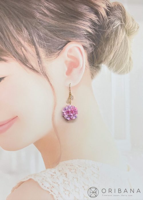 紫陽花をモチーフにした、つまみ細工のピアス。