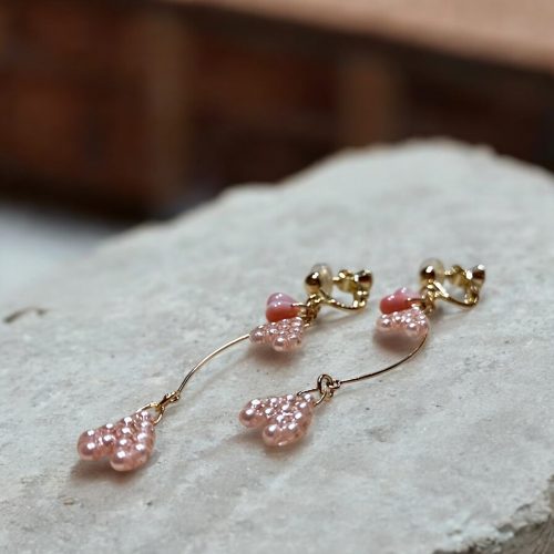 優しいピンクのパールを組み合わせて花びらを作り、しずく型のビーズで、これから咲こうとするつぼみを表現しました。