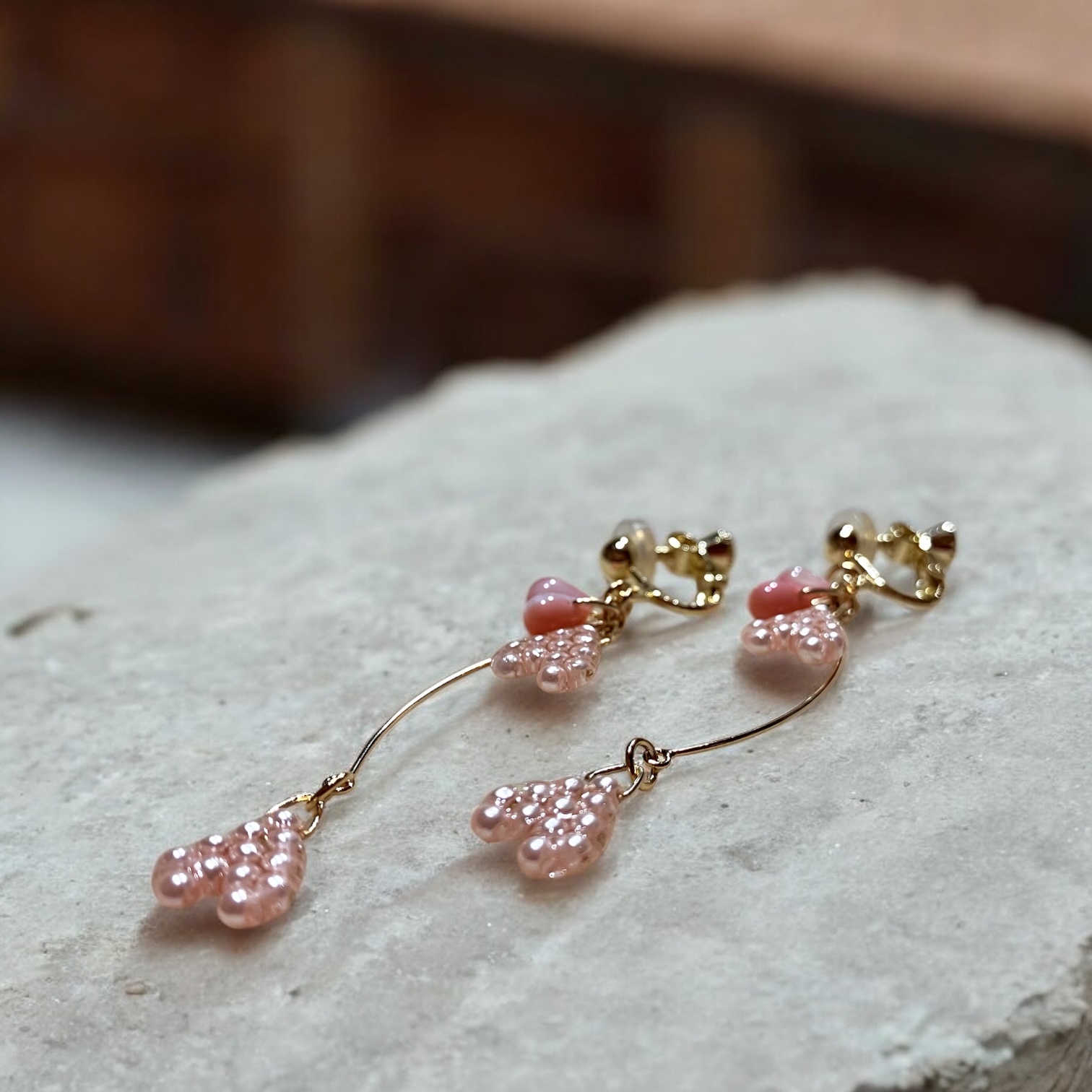 桜の花びらがひらりと舞うイメージのイヤリング/ピアスです。
