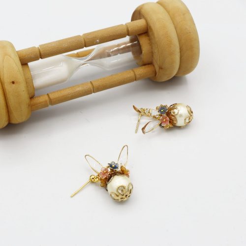 「卵」にはコットンパールを使用し、レジンで作成したピンク・ブルー・イエローの小花の冠を飾り付けました。