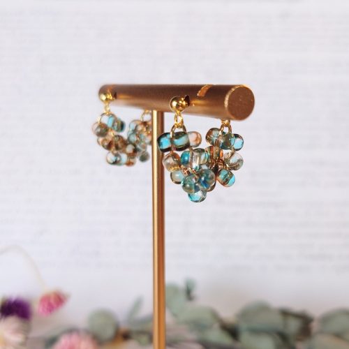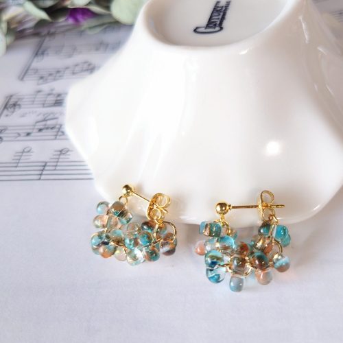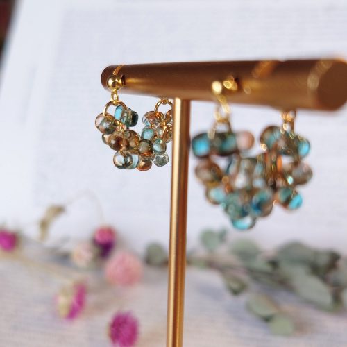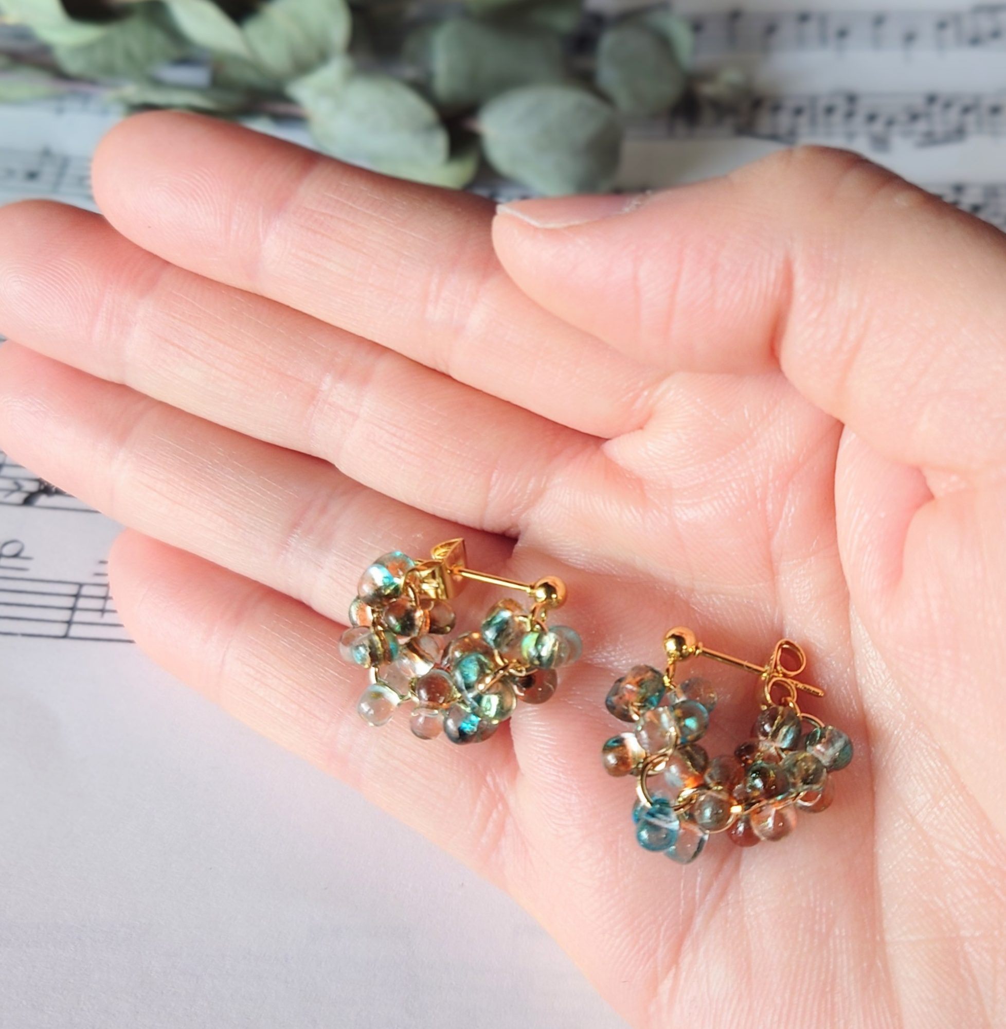 ファルファーレという、チェコガラスビーズを紡いだフープピアス/イヤリングです。