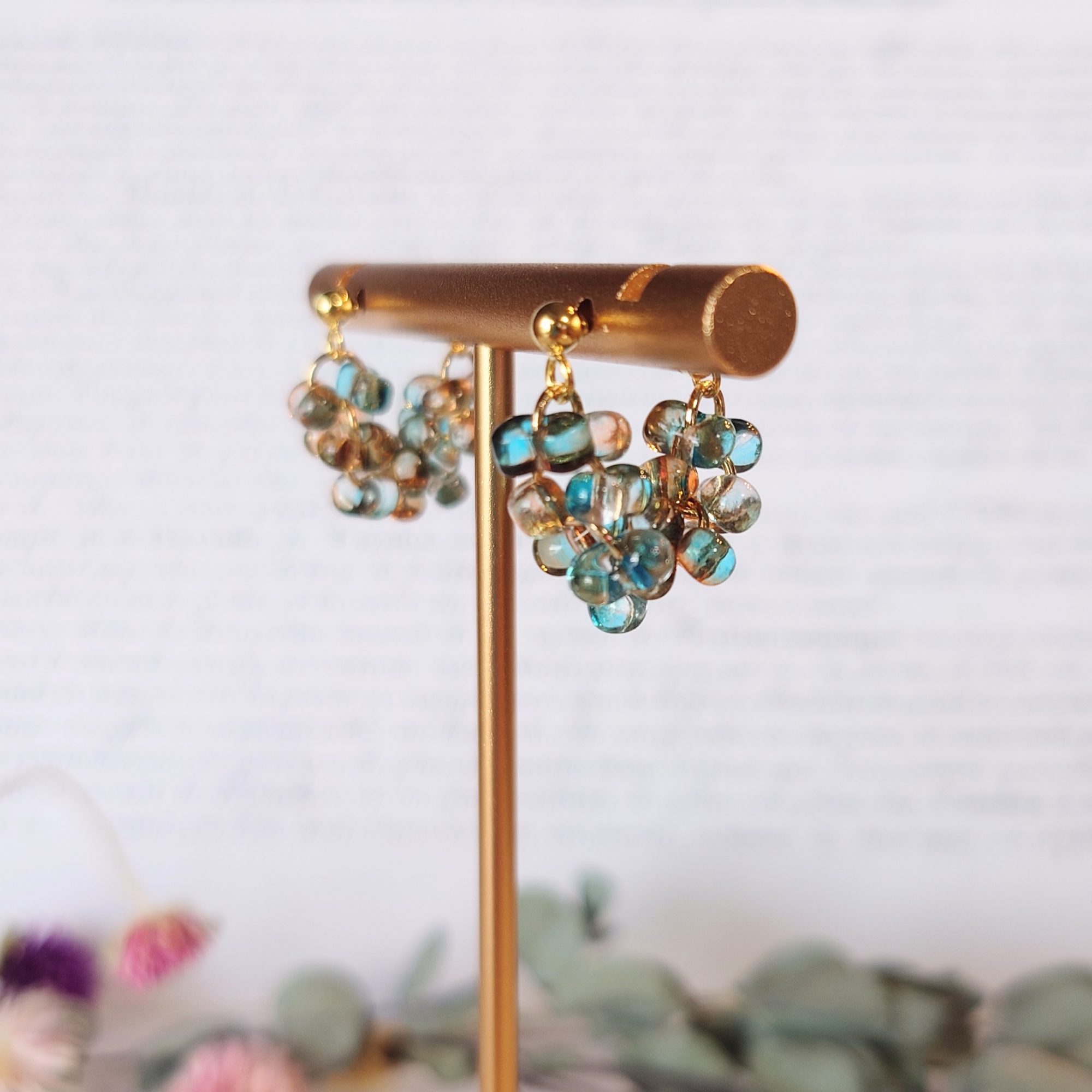 チェコガラスのつぶつぶフープピアス/イヤリング「宵の海」