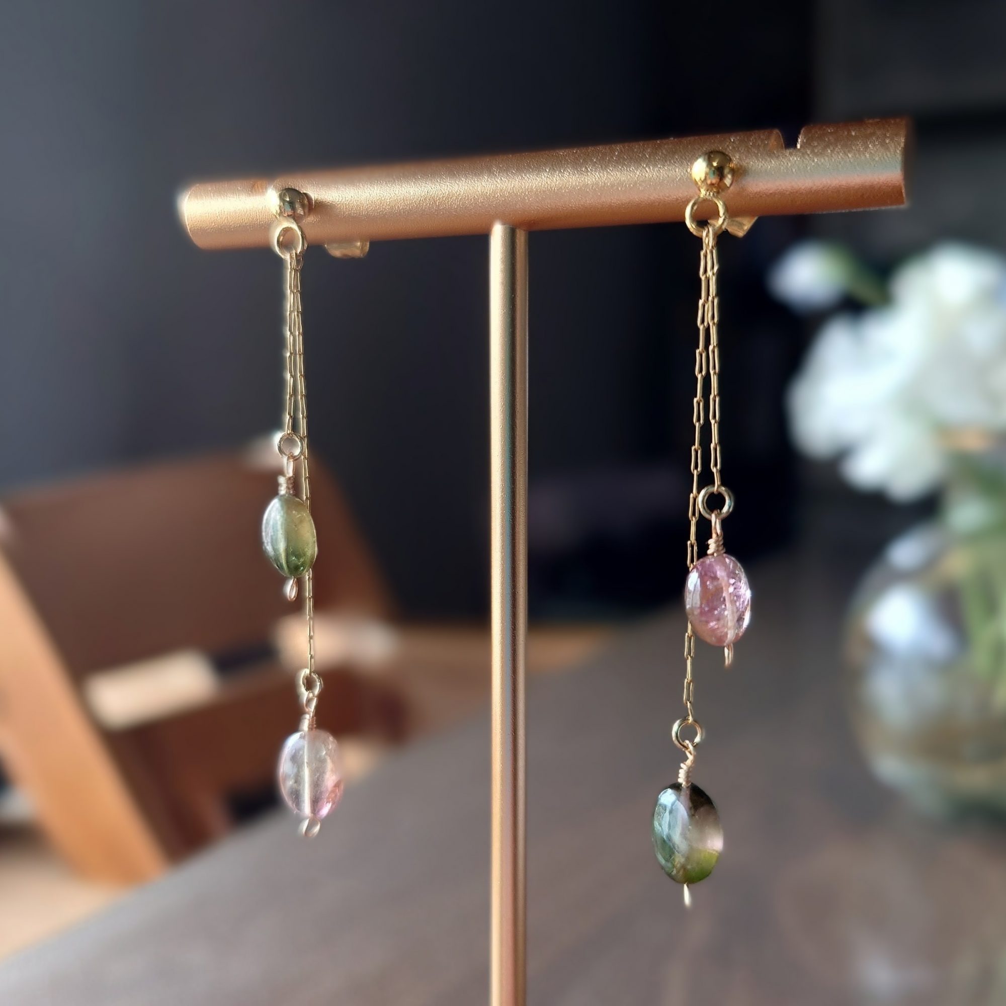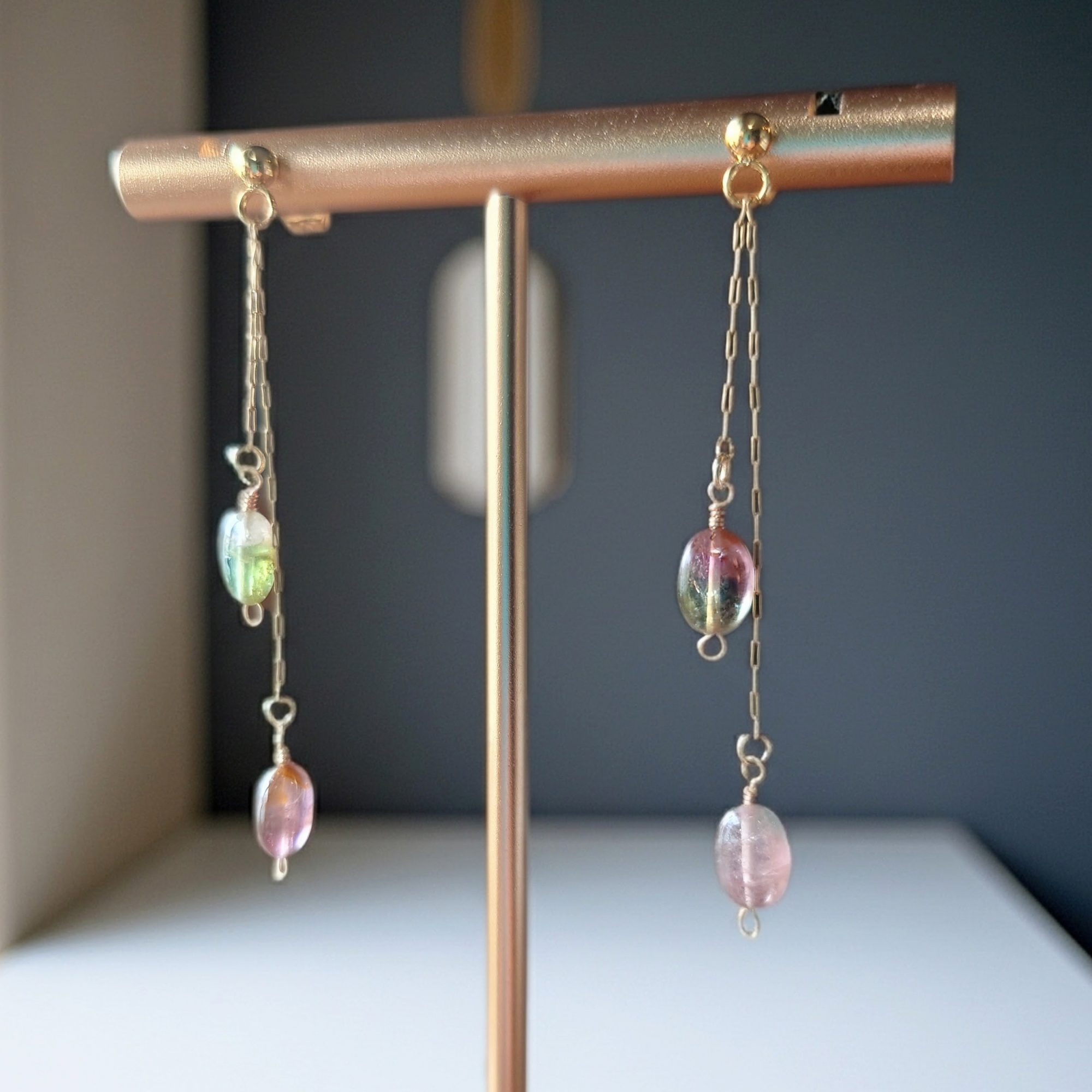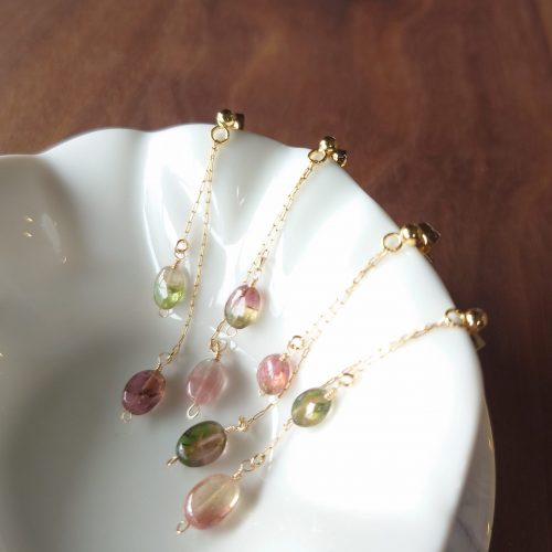 バイカラートルマリンの華奢ロングピアス/イヤリング