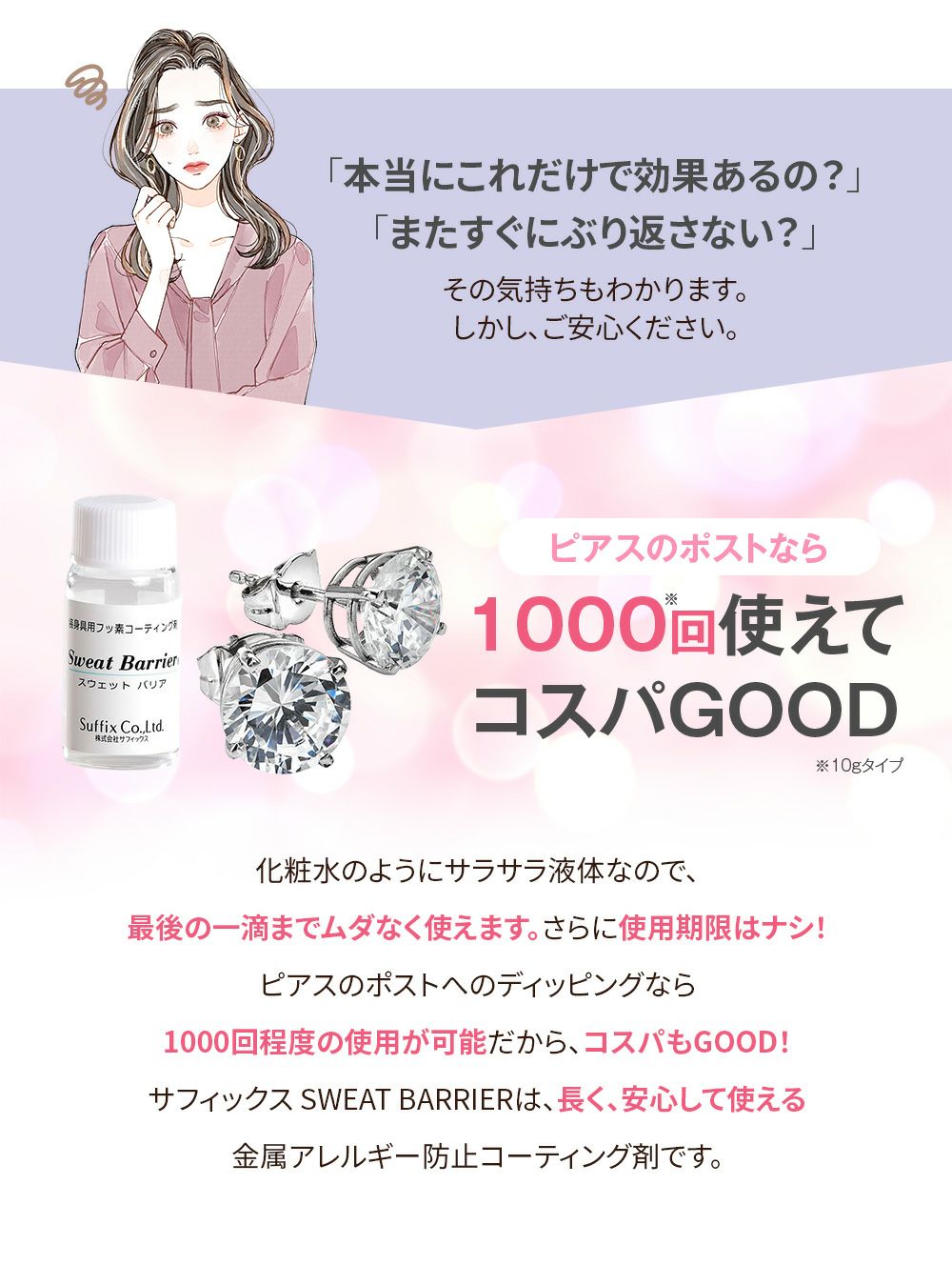 他の画像を見る Jewelry protect Sweat barrier Suffix 痒み防止 かぶれ 対策 くすみ 黒ずみ 防錆 アクセサリー 時計 眼鏡 装身具用 速乾 30秒 Sweat barrier スウェットバリア サフィックス 日本製 コーティング フッ素 金属 変色防止 金属アレルギー 金アレ ハンドメイド アクセサリー O-05 当店特別価格 ¥ 1,980 税込 〜 当店特別価格 ¥ 税込 詳細を見る お気に入りに登録する