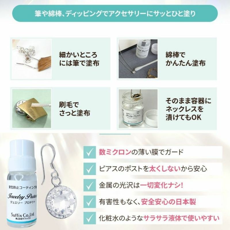 ジュエリープロテクト Jewelry protect サフィックス 日本製 コーティング フッ素 金属 変色防止 金属アレルギー 金アレ ハンドメイド アクセサリー O-05