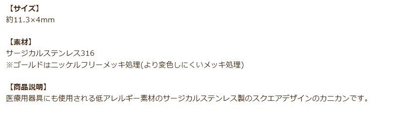 [ 10個 ] スクエア カニカン [ ゴールド 金 ] サージカルステンレス パーツ 金属アレルギー M1-01
