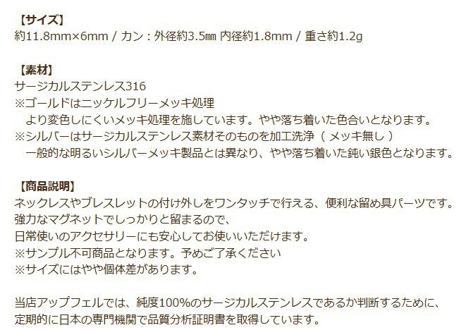 金アレ 316 素材 材料 ニッケルフリー 敏感肌 留め具 簡単装着