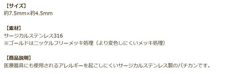 医療器具にも使用されるアレルギーを起こしにくいサージカルステンレス製のバチカンです。