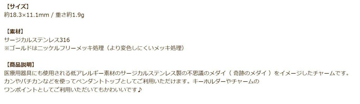 他の画像を見る SUS 316 金アレ モチーフ メダル メダイユ 素材 手芸 [ 2個 ] マリア メダイ チャーム 小 [ ゴールド 金 ] サージカルステンレス ネックレス ペンダントトップ パーツ お守り 金属アレルギー対応 O-05 当店特別価格 ¥ 469 税込 カートに入れる お気に入りに登録する