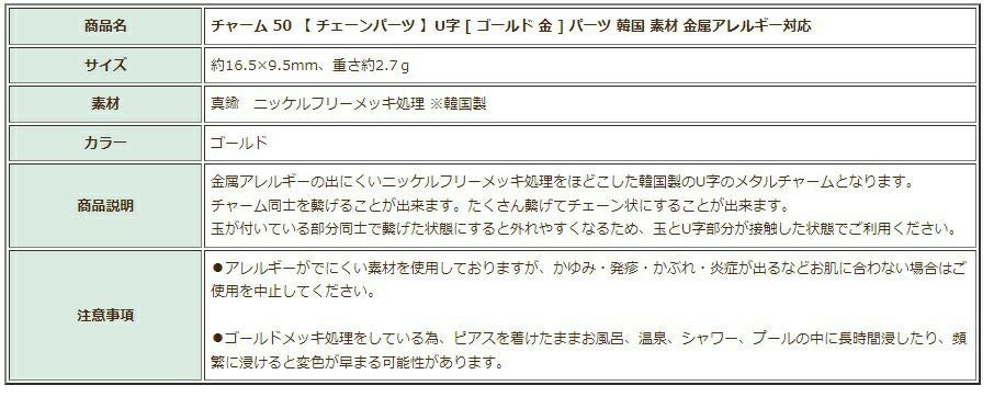 他の画像を見る 真鍮 ニッケルフリー メッキ 安心 金アレ 韓国製 チェーン U字 [4個] チャーム 50 【 チェーンパーツ 】U字 [ ゴールド 金 ] パーツ 韓国 素材 金属アレルギー対応 当店特別価格 ¥ 499 税込 在庫切れ 再入荷お知らせ お気に入りに登録する