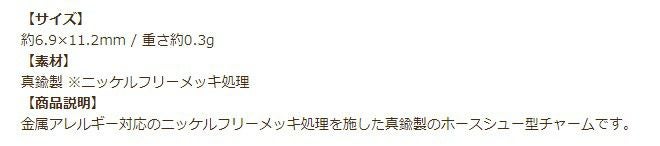 他の画像を見る 金アレ チャーム ひづめ 素材 ニッケルフリー 敏感肌 [4個] 真鍮製 * カン付き * ホースシュー チャーム [ ゴールド 金 ] 韓国製 馬蹄 パーツ 金属アレルギー対応 O-03 当店特別価格 ¥ 300 税込 在庫切れ 再入荷お知らせ お気に入りに登録する