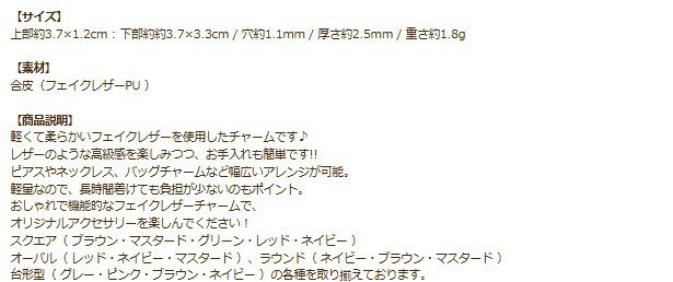 人工 皮革 革 チャーム レザー調 レザーチャーム 素材 手芸