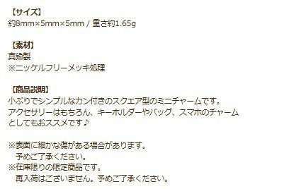 小ぶりでシンプルなカン付きのスクエア型のミニチャームです。