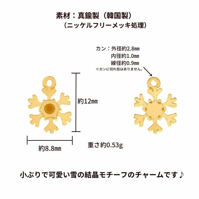 [4個] 真鍮製 カン付き 雪の結晶 チャーム [ ゴールド 金 ] 韓国製 パーツ チャーム 小ぶり 冬 スノー 金属アレルギー対応 O-03