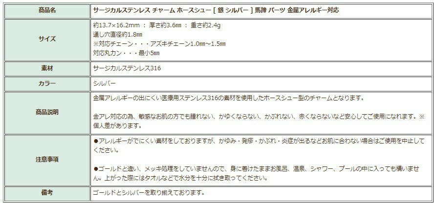 他の画像を見る 金アレ 316 チャーム ひづめ 素材 ニッケルフリー 敏感肌 [5個] サージカルステンレス チャーム ホースシュー [ 銀 シルバー ] 馬蹄 パーツ 金属アレルギー対応 当店特別価格 ¥ 1,422 税込 在庫切れ 再入荷お知らせ お気に入りに登録する