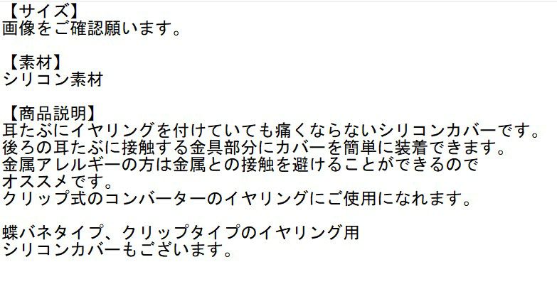 他の画像を見る 樹脂カバー コンパーター 専用 [10個]イヤリング用 シリコン カバー C クリップ式コンバーター 用 E2-04 樹脂 素材 パーツ 金属アレルギー 当店特別価格 ¥ 329 税込 カートに入れる お気に入りに登録する
