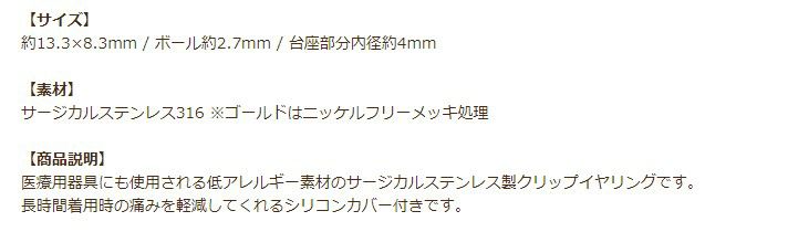 他の画像を見る Vカット台座 金アレ 316 SUS 腫れない かぶれない 素材 金具 [10個]カン無し Vカット台座 3mm付き 【 クリップ イヤリング 】[ ゴールド 金 ] サージカルステンレス シリコンカバーB付き E2-01 パーツ 当店特別価格 ¥ 1,399 税込 カートに入れる お気に入りに登録する