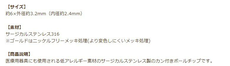 医療用器具にも使用される低アレルギー素材のサージカルステンレス製のカン付きボールチップです。