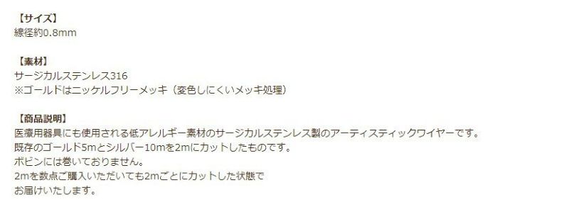 [約2m] * 切り売り * [ 20G ] アーティスティックワイヤー 0.8mm [ ゴールド 金 ] サージカルステンレス ワイヤーワーク ワイヤーアート パーツ 金属アレルギー対応 M2-03