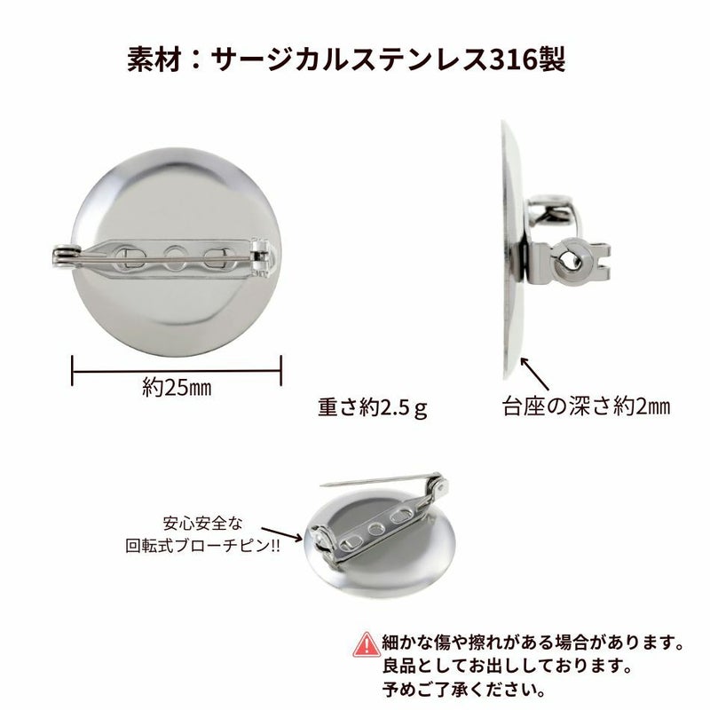 [10個] 316 台座付き ブローチピン 25mm [ 銀 シルバー ] サージカルステンレス コサージュピン 金具 パーツ 素材 金属アレルギー対応 O-05