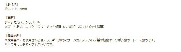 医療用器具にも使用される低アレルギー素材のサージカルステンレス製の紐留め・リボン留め・レース留めです。
