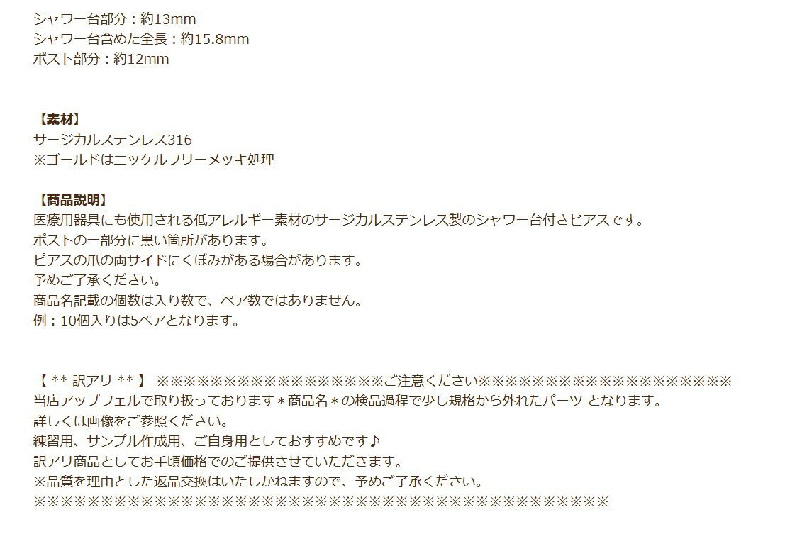 他の画像を見る ニッケルフリーメッキ 低アレルギー 安心 腫れにくい 316 [10個] 【 ** 訳アリ ** 】 シャワー 台付き *ピアス* 13mm [ ゴールド 金 ] 【 ポストのみ 】 サージカルステンレス 金具 パーツ 金属アレルギー P3-04 当店特別価格 ¥ 993 税込 カートに入れる お気に入りに登録する