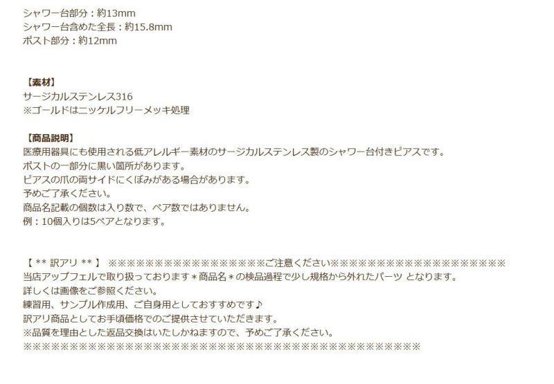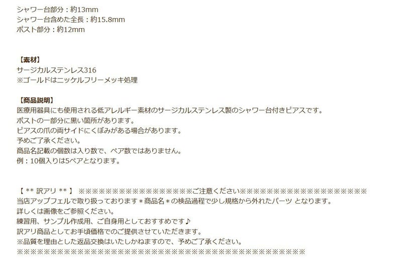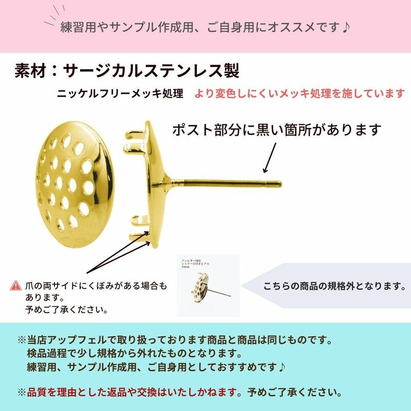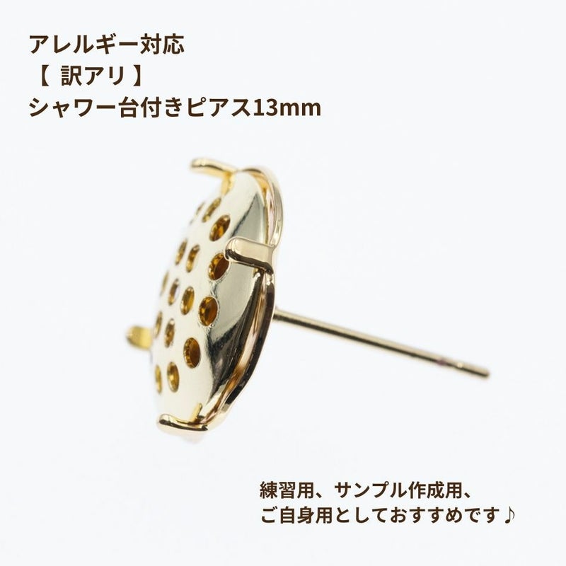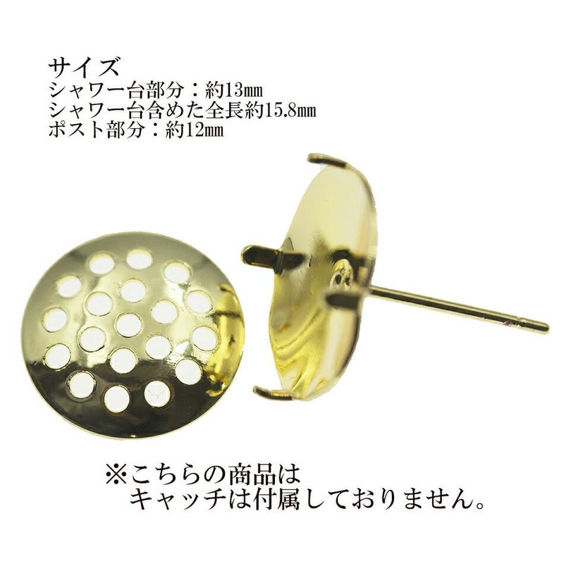 [10個] 【 ** 訳アリ ** 】 シャワー 台付き *ピアス* 13mm [ ゴールド 金 ] 【 ポストのみ 】 サージカルステンレス 金具 パーツ 金属アレルギー P3-04