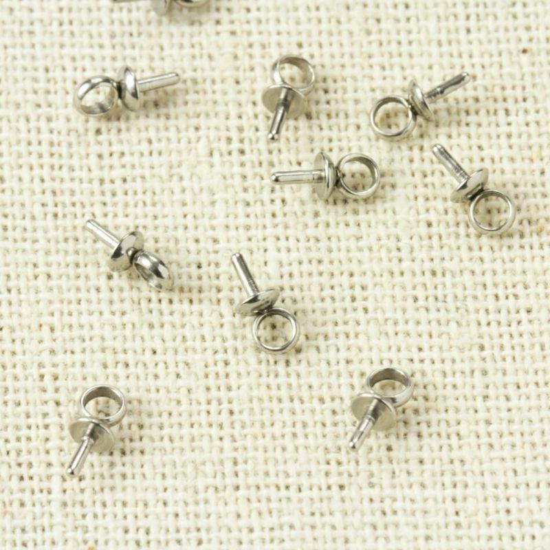 [10個] 【 ** 訳アリ ** 】 ステンレス 【 差し込み 】ヒートン [銀シルバー] 蓋 キャップ アクセサリーパーツ 金具 素材 金属アレルギー CA-06