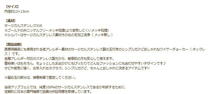 金属アレルギー 医療用 素材 お手入れ簡単 316L 金具