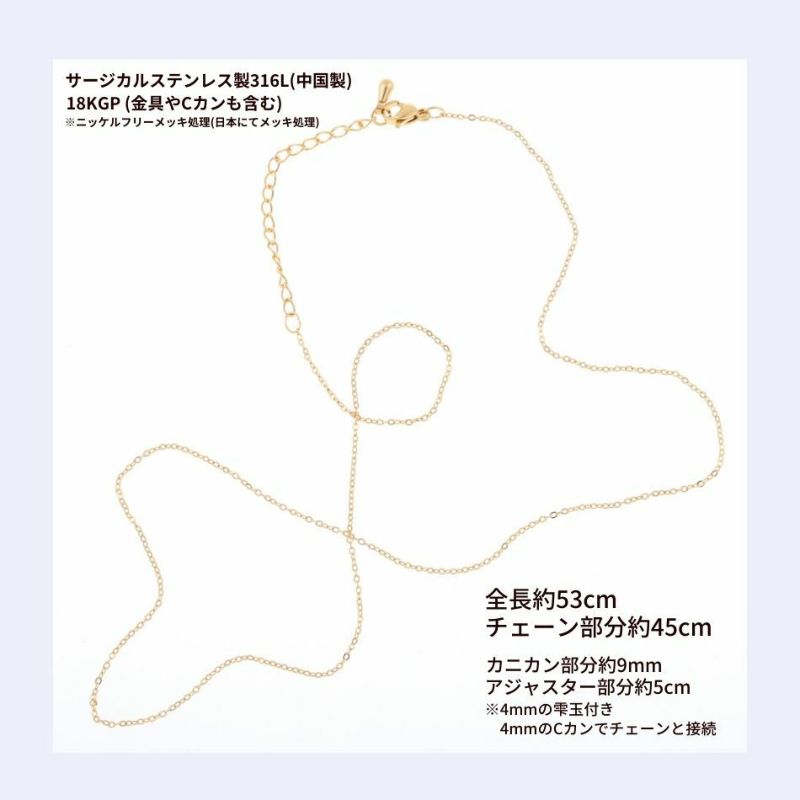 低アレルギー素材のSUS316L製のカニカンとアジャスター付きアズキチェーンのネックレスチェーンです。