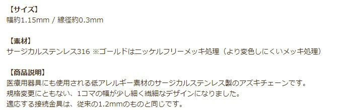 [1M×1本] 小豆チェーン 【 高品質 イオンP 】1.2mm [ ゴールド 金 ] サージカルステンレス 切り売り チェーンのみ アズキチェーン パーツ C1-01 金属アレルギー対応