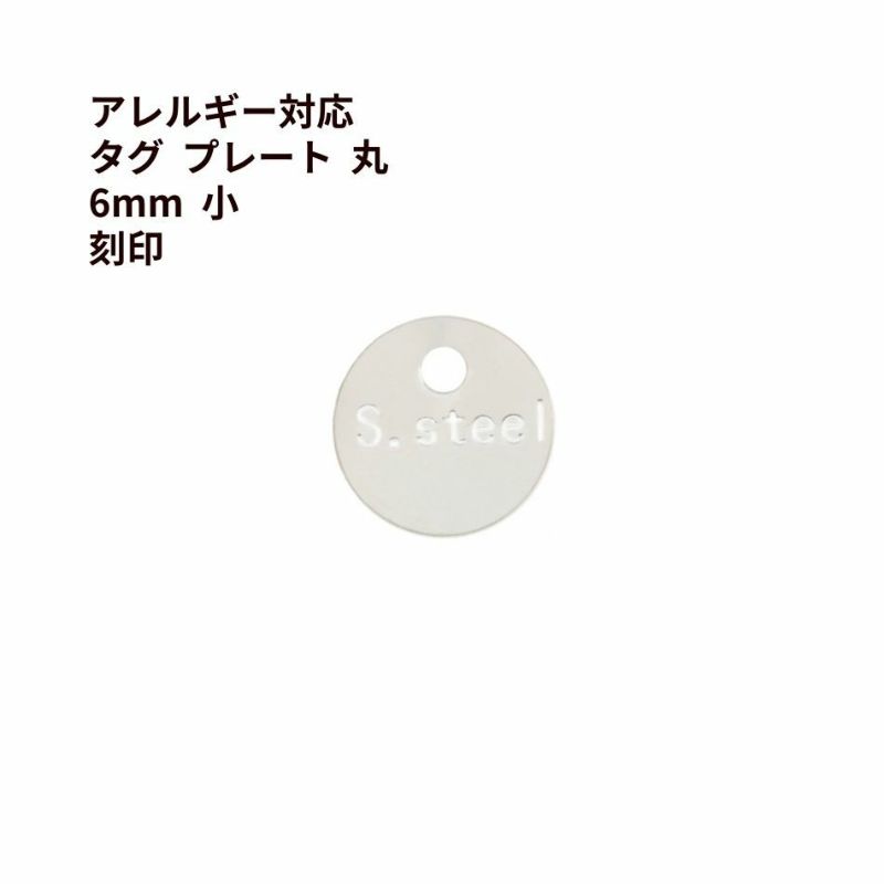 [5個] 316 タグ プレート 丸 6mm 小 刻印 [ 銀 シルバー ] サージカルステンレス ネックレス パーツ 金属アレルギー 対応 M1-03