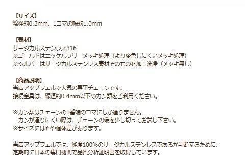 18Kゴールド金メッキ、シルバー、ピンクゴールドメッキなどSUSチェーン切り売りの圧倒的な品揃え!