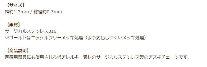[1M×1本] 小豆チェーン 1.3mm [ ゴールド 金 ] サージカルステンレス 切り売り チェーンのみ アズキチェーン パーツ C1-01 金属アレルギー対応