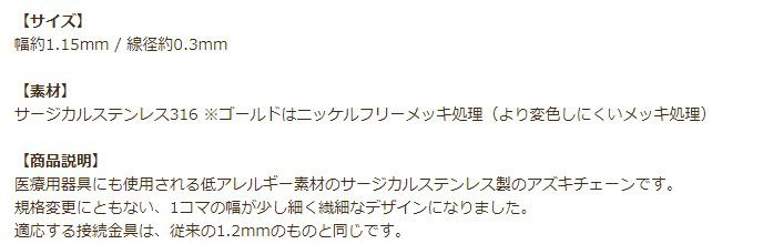 [1M×1本] 小豆チェーン 1.5mm [ ゴールド 金 ] サージカルステンレス 切り売り チェーンのみ アズキチェーン パーツ C1-01 金属アレルギー対応