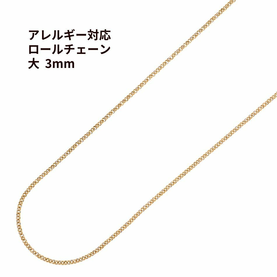316 ロール チェーン 甲丸チェーン * 大 3.0mm * [ ゴールド 金 ] サージカルステンレス ロロチェーン パーツ 金属アレルギー対応 C1-01