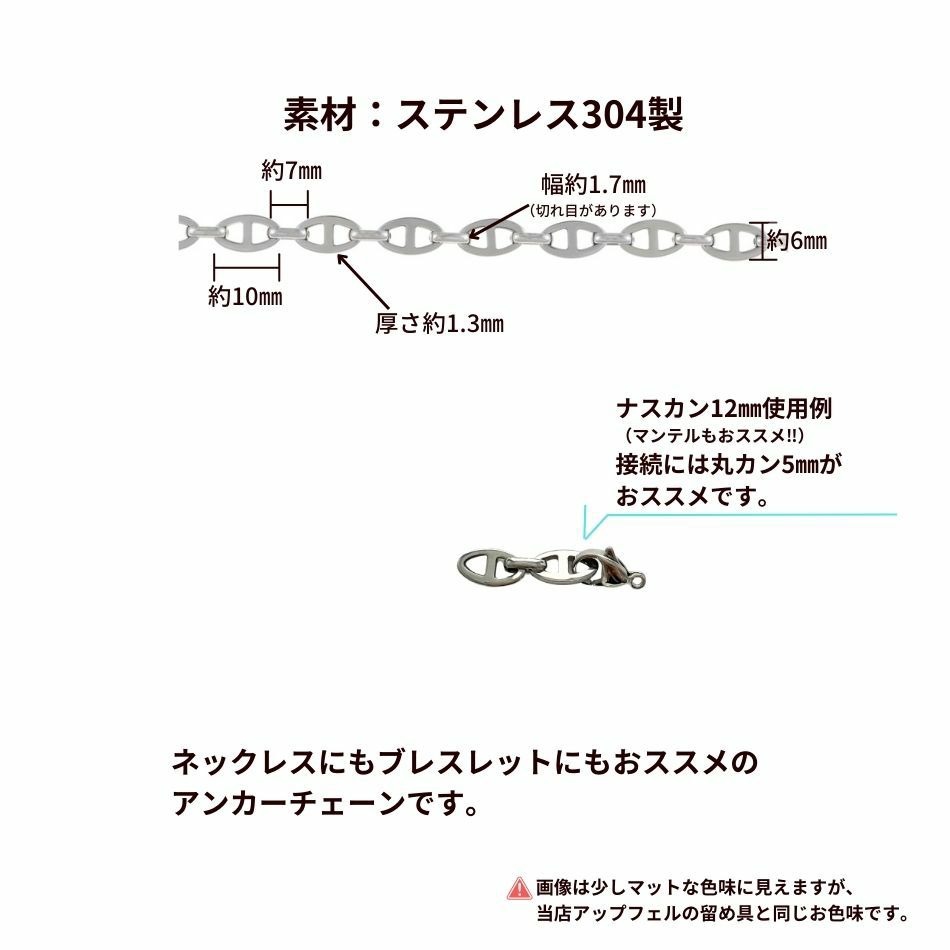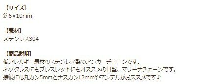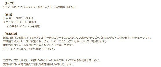 変色しない、かぶれないステンレスのチェーン切り売りとなります。