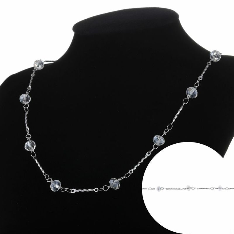 [50cm×1本]切り売り ステンレス 304 ガラスビーズ * 6mm * コネクターチェーン [ 銀 シルバー ] チェーンのみ パーツ 金属アレルギー対応 C2-02