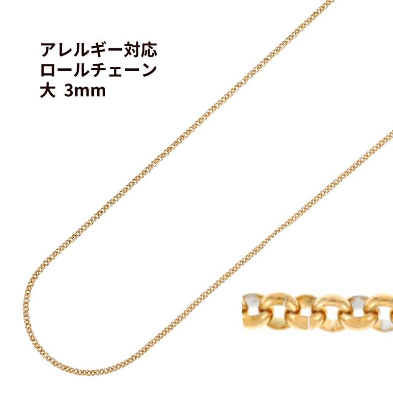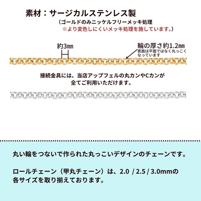 ロール チェーン 甲丸チェーン * 大 3.0mm * [ ゴールド 金 ] サージカルステンレス ロロチェーン パーツ 金属アレルギー対応 C1-01