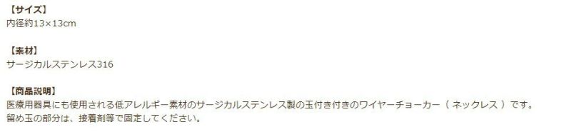 医療用器具にも使用される低アレルギー素材のサージカルステンレス製の玉付き付きのワイヤーチョーカー( ネックレス )です。