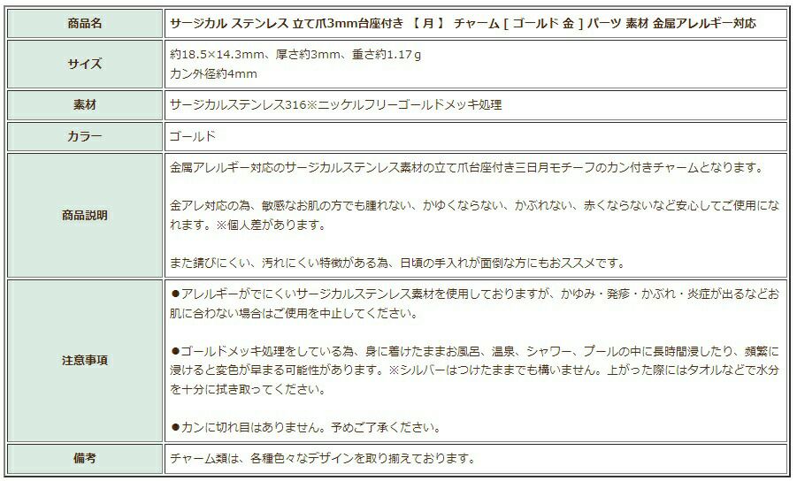 金属アレルギー 素材 お手入れ簡単 316 金色 素材 金具