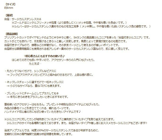 [5個] 縦向き 台座 キュービックジルコニア 《 4mm 》 [ ゴールド 金 ] サージカルステンレス チャーム カン付き パーツ 金属アレルギー対応 O-03