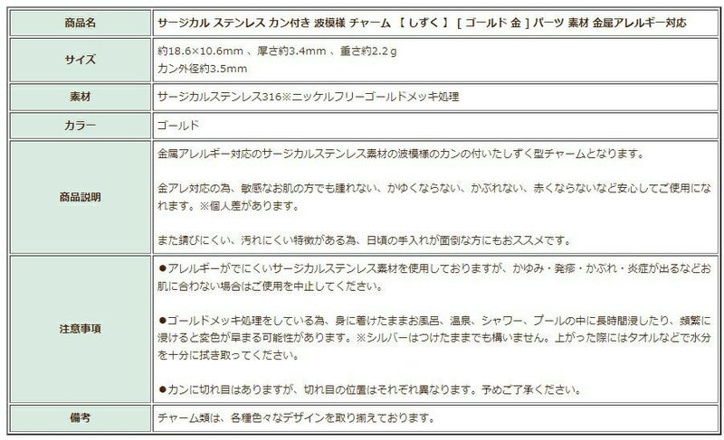 サージカル ステンレス カン付き 波模様 チャーム 【 しずく 】 [ ゴールド 金 ] パーツ 素材 金属アレルギー対応