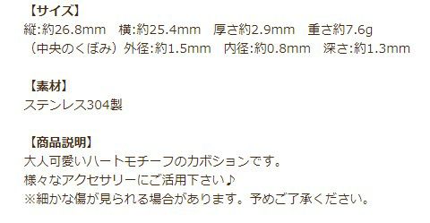 他の画像を見る 金アレ 素材 材料 ニッケルフリー 敏感肌 貼付 セッティング [4個] 304 カボション K1008 ラインハート [ 銀 シルバー ] ステンレス パーツ 貼付 セッティング キュート ラブ 大人 金属アレルギー対応 O-03 当店特別価格 ¥ 399 税込 カートに入れる お気に入りに登録する