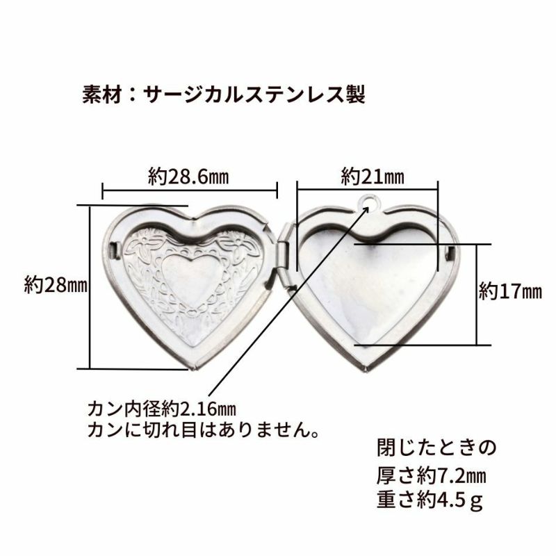 サージカル ステンレス チャーム 【 ロケット 】 ハート [ 銀 シルバー ] パーツ 素材 金属アレルギー対応