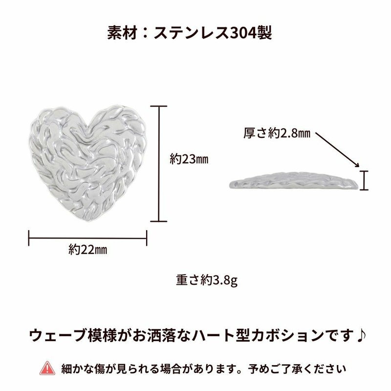 [4個] 304 カボション K1006 ウェーブハート *大* [ 銀 シルバー ] ステンレス パーツ 貼付 セッティング キュート ラブ 金属アレルギー対応 O-03