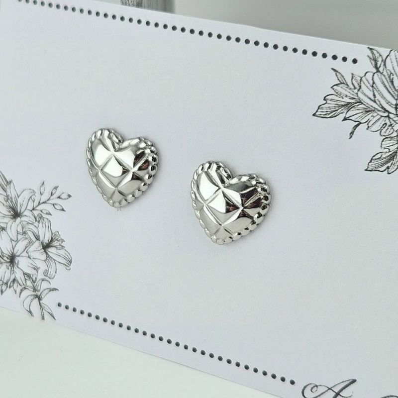 [4個] 304 カボション K1003 キルトハート *小* [ 銀 シルバー ] ステンレス パーツ 貼付 セッティング キュート ラブ 金属アレルギー対応 O-03