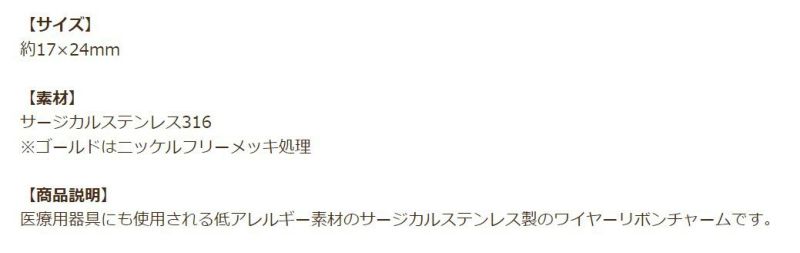 医療用器具にも使用される低アレルギー素材のサージカルステンレス製のワイヤーリボンチャームです。